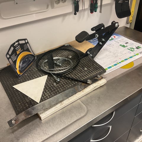 Nyt oli kiinni Fiestassa. Laitan pakettiin mukaan vielä vaijerin näpsäkät kiinnikkeet tuuletusventtiiliin - eipä sitten vaijeri sinkoile käsille keskikonsolin päällä, vaikka olisi hieman "kengurubensaa" tankissa.