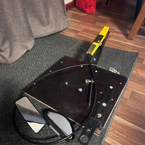 Myydään tarpeettomana hyvä ja toimiva opetuspoljin + magneettinen kolmio + tarrakiinnitteinen laajakulmapeili sivupeiliin opettajan iloksi.