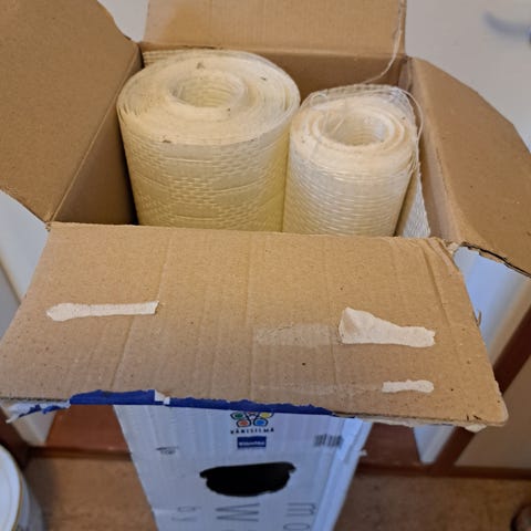 Kuvan mukainen määrä käytettyjä lasitiiliä. Olleet silikoonisaumoilla ja puretuissa tiilissä silikonia onkin kiinni. Mielellään koko määrä kerrallaan ja pikainen nouto on plussaa.