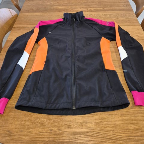 Vähän käytetty hiihdossa Dobsom merkkinen hiihtotakki / juoksutakki viileämmille keleille. Selässä vetoketju tasku, edessä myös taskut molemmin puolin sekä pieni rintatasku. Koko 38. Mustat kohdat joustavaa ohkasempaa kangasta ja valkoiset kohdat paksumpaa tuulenpitävää kangasta.