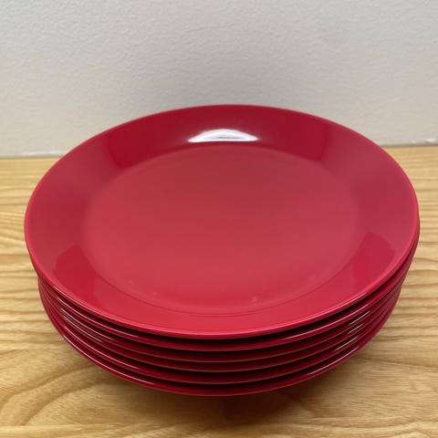 6kpl Iittala Teema lautanen punainen 21 cm. Kunto hyvä. Hieman aterimista tullutta pientä naarmua.
