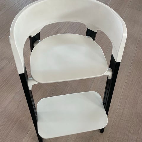 Stokke istuinpehmuste lasten tuoliin. Pehmuste koostuu selkä- ja istuinosasta, joissa on vaalea pohjaväri ja tumma, nelilehtisen apilan kaltainen kuosi. Pehmuste on irrotettava ja vesipestävä hoito-ohjeiden mukaisesti. Soveltuu käytettäväksi Stokke lastentuolin kanssa. Hieman käytöstä tullutta tummentumaa.