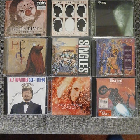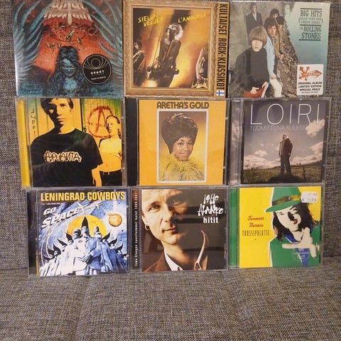 Hienokuntoiset cd levyt, The Stooges , Doors ,Tuomari Nurmio, Pohjalla kokoelma, Kauko Röyhkä, Tavaramarkkinat ja Leningrad Cowboys , postitan tarvittaessa. On vaan niin kallista. Nouto olisi hyvä. Postitus 8e tulee kyllä vaikka kaikki.