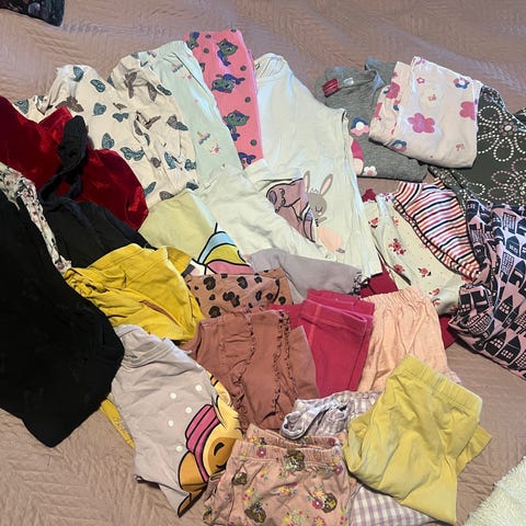 - Koko 120-130cm. Kaikki olleet suunilleen samaan aikaan käytössä. (Pääkuvassa muutama vaate, jotka eivät kuulu kauppaan. Merkattu ”myyty” tekstillä)