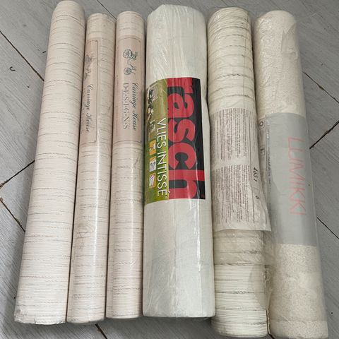 Myydään kangastekstuuri vanhanajan (uus vanhaa) tapettirullaa 5 isoa rullaa joista yksi on avattu kuvaamista varten. Tapetti on paksua laadukasta hieman koho kuvioista ja näyttää kauniilta kankaalta. Leveys 53cm.