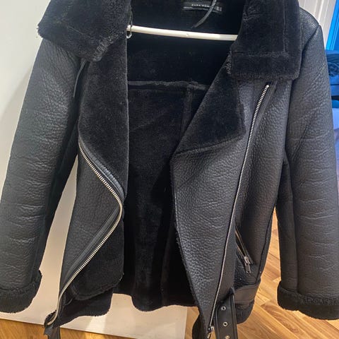 Musta tekonahka talvitakki kerran, kaksi kokeiltu kunto hyvä koko XS/S