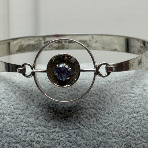 Rannekoru on erittäin hyvässä kunnossa, mutta rannekorun sisäpuolella on nimikaiverrus.