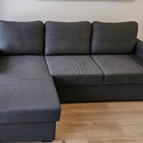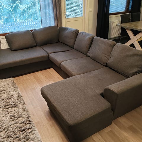 Sohvassa on useita istuin- ja selkätyynyjä sekä L-mallinen kulmarakenne, joka tarjoaa runsaasti istumatilaa. Istuinkorkeus 41 cm.