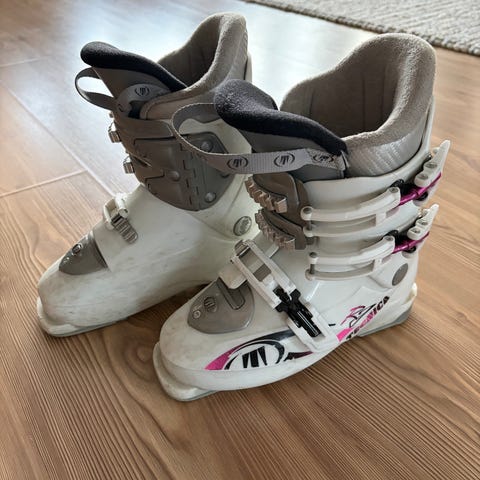 Lasten Salomon-merkkiset laskettelumonot. Ovat ns. temppumonot eli suunniteltu erityisesti twintip-suksien (eli temppusuksien) kanssa käytettäviksi (hypyt, temput yms.), mm. paksummat pohjat jotka vaimentavat tehokkaasti jalkoihin kohdistuvaa rasitusta esim. hypyn jälkeen. Menevät toki hyvin myös ihan perinteisessäkin laskettelussa normaalien laskettelusuksien kanssa. Monojen sisämitta 24 cm eli vastaa n.38 kokoa karkeasti arvioituna. Ehjät monot, kaikki soljet ja lenkit yms. kunnossa. Hinta 75 e