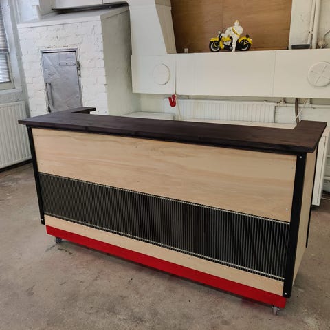 Laadukas ja painava vastaanottotiski/keittiönsaarreke kesäkeittiöön/kerhotiloihin baaritiskiksi.You name it. Ollut messukäytössä n.5x.