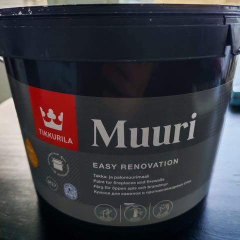 Maalia on noin puoli ämpäriä eli ehkä joku 4-5 litraa. Maalilla on maalattu 4,7m x2,5m seinä kahdesti eli on riittoisaa.