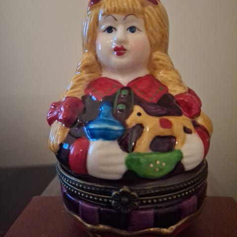 Avattava posliininen leimalla Villeroy & Boch 1748. 1990-luvun lopun – 2000-luvun alun joulumallistosta. Materiaali posliini, korkeus 9cm.