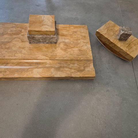 Hieno vanha Italialainen marmori setti työpöydälle. Painoa n.10kg. Hienot värit. 5 eri osaa. Marmori kynttiläjalat 9x22cm ja keskiosa 42x22cm.