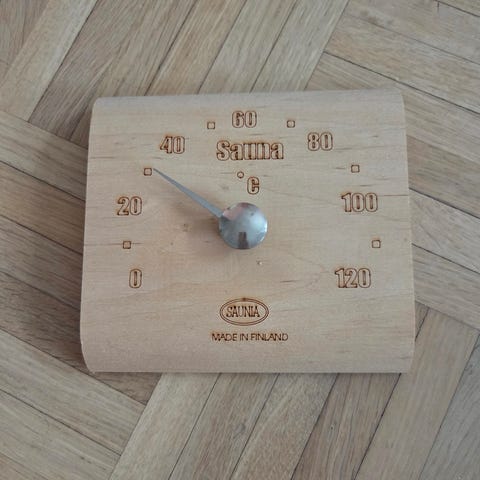 Puinen sauna-kyltti, jossa ruskea tausta ja kohollaan oleva valkoinen teksti "Sauna". Kyltissä on ripustusnaru, jonka avulla sen voi kiinnittää oveen tai seinään. Sopii saunan oven tai saunatilan merkitsemiseen. Käsintehty tuote, materiaalina puu ja naru kiinnitystä varten. Pituus 28 cm ja korkeus 11cm.