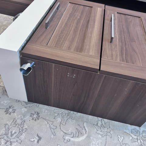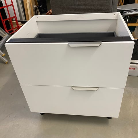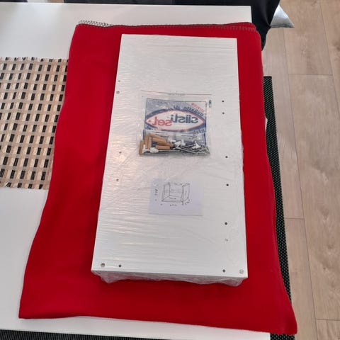 Valkoinen allaskaappi laatikolla