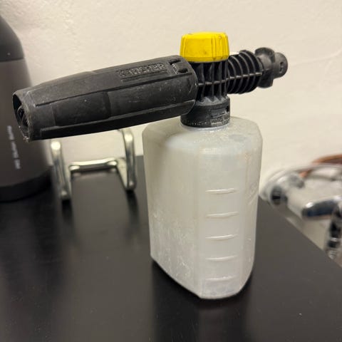 Vaahdottimessa suutin isoja painepesureita varten joss on suuri veden tuotto. Vaahdotin on laadukas dr dirt. Vaahdotimessa kiinni kärcher hd easy lock adapteri numero 5.