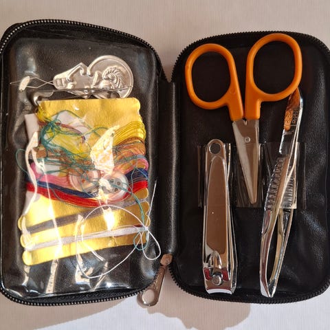 Neulonta- ja ompelutarvikesetti, jossa useita pieniä apuvälineitä käsitöihin. Pakkauksessa on muun muassa silmukkamerkkejä, silmukkapidike, ompelu- ja parsinneuloja, mittanauha, neulatyyny/sormustin sekä muita pieniä tarvikkeita. Setti on läpinäkyvässä kotelossa, joka helpottaa säilytystä ja kuljettamista. Sopii erilaisiin neulonta- ja ompelutöihin sekä pienten korjausten tekemiseen kotona.
