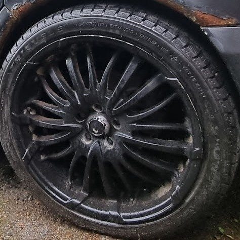 Tästä kuvan vanteet, takakumeissa on pintaa about 4mm ja etusissa on vähän enemmän mutta reunat ovat syöneet pahasti, näkyy heikosti kuvissa mutta otan parempia tilanteen tullen.
