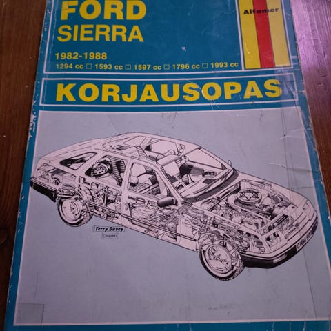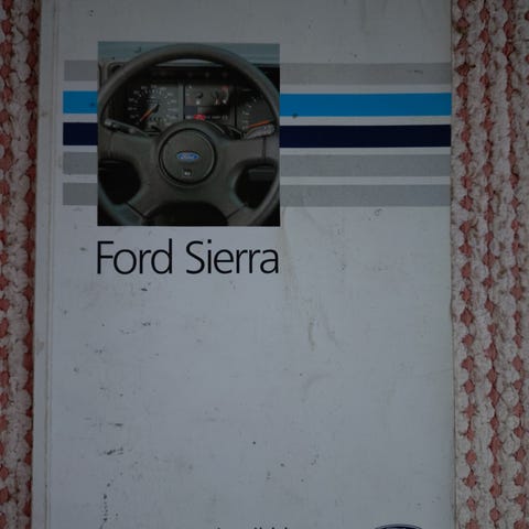 Ford Sierra esite, jossa esitellään Ford Sierra -malliston eri korimalleja ja varustevaihtoehtoja. Esite sisältää värikuvia autojen ulko- ja sisätiloista sekä teknisiä ja varustetietoja useista Sierra-versioista, mukaan lukien sedan-, farmari- ja 4x4-mallit.