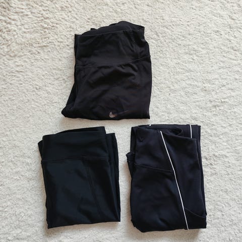 Myydään 5kpl treenitrikoita ja 3kpl treenitoppeja pakettina.