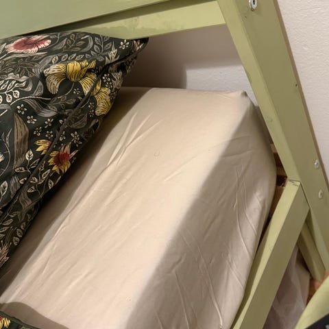 IKEA sänky ja patja. Kuvassa runkosänky ja sen päällä oleva patja. Väri on vaalea, ja sänky sopii makuuhuoneeseen peruskäyttöön. Tarkemmat mitat :160x200