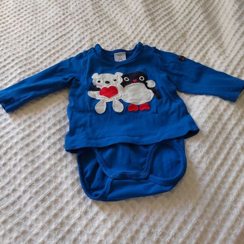 Polarn.o.pyret body 62. Kauluksessa hieman värjääntymää ruuasta mutta en ole kokeillut pestä erikseen sitä kohtaa että lähteekö.
