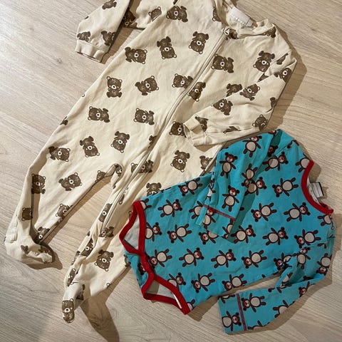 Peuhu nallepyjamat eteenpäin mieluiten yhdessä samisteluun. Pienemmän koko 100cm ja isomman 130cm. Pientä haitua, haalistumaa ja printti on hyvin rosoinen, mutta oli jo uutena eli kuuluu näihin. Isomman toisessa hihassa pintakuluma jälki (kuva). Yhdessä 5e.