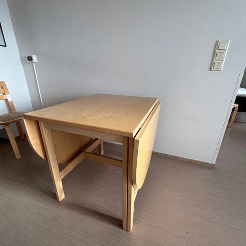 Myydään 28mm liimapuulevystä valmistettu ruokapöytä ja neljä tuolia.