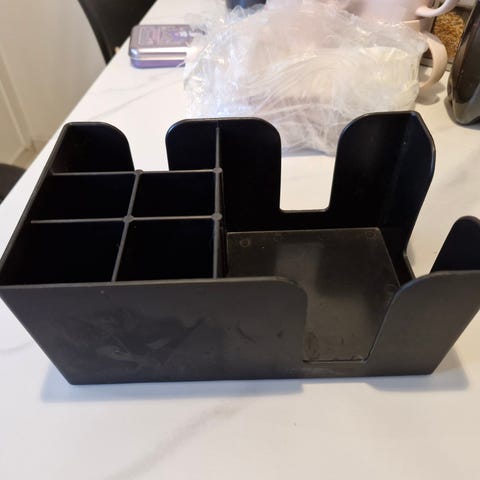 Taitettava pieni pyykkiteline, kätevä esim. sukille ja alusvaatteille. Saa roikkumaan koukun avulla kätevästi. Käytetty mutta ehjä.