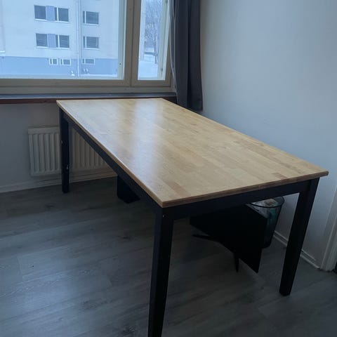 Myydän hyväkuntoinen ruoka-/työpöytä. Tuolit eivät kuuluu hintaan, mutta halutessaan ne voi ostaa erikseen.