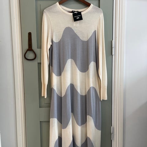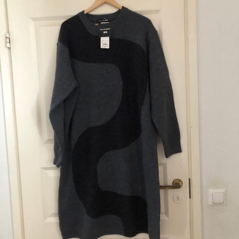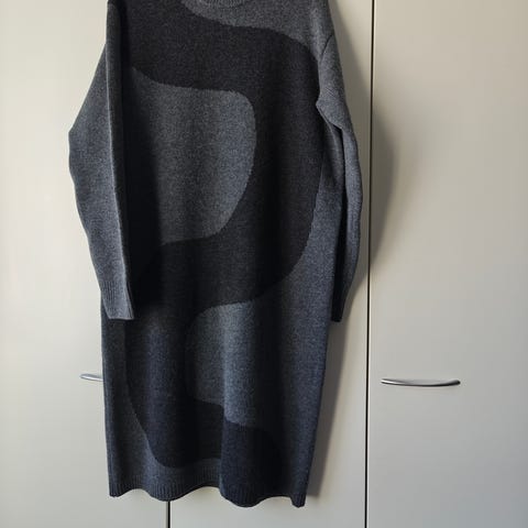 Uudenveroinen Marimekon ja Uniqlon yhteistyömallistosta pitkä villapaita / mekko