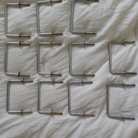 10 kappaletta 80-luvun vetimiä kiinnitysruuveilla. Ruskea, materiaali muovi. Mitat kuvissa. Jos tarvitset useamman, laita viestiä. Toridiili tai nouto.