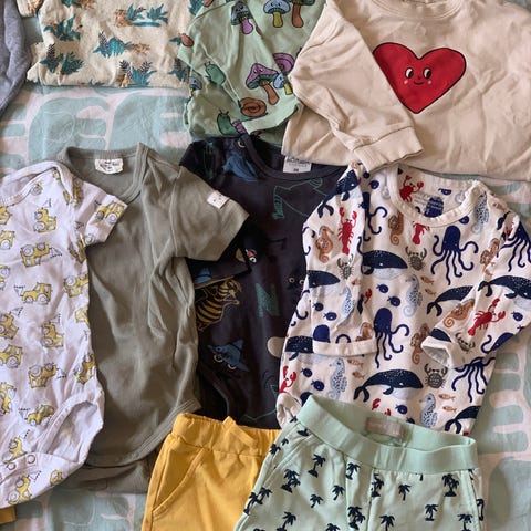 Merkkejä mm. Polarn O. Pyret, Kappahl, Peuhu, H&M, Lindex. Kaikki Suomesta ostettuja vaatteita, ei siis Temu/Shein.