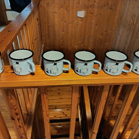 Käyttämätön, vitriinissä säilytetty Muurla emali muki. Muumiaiheinen, vetoisuus arviolta n 2dl.