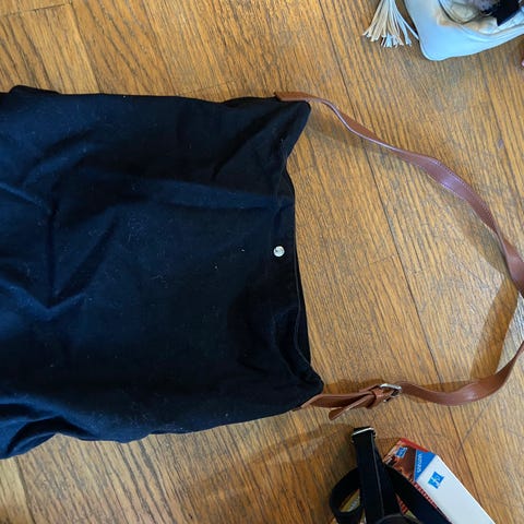 Myydään farkkukankainen käsilaukku. Vetoketju kiinnitys, myös sisällä vetoketjullinen tasku. Olkahihnassa koristeena solki. Ei säätöä. Laukun pohjassa vahvike. Hihnan pituus noin 43cm. Pohjan leveys noin 29cm ja syvyys (pohjasta mitattuna) noin 14cm. Nouto tai ostajalle toimituskulut.