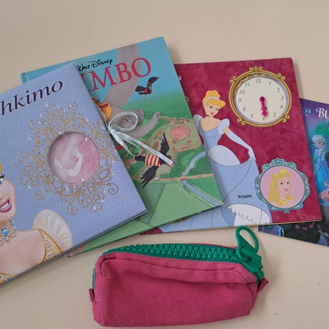 Sekalainen nippu lastenkirjoja ja sarjakuvia ym. Mukana useita Aku Ankka -sarjakuvia sekä erilaisia kuvakirjoja ja tehtävä- tai askartelukirjoja. 2 palapeliä. Kirjat ovat eri kokoisia ja värisiä, osa ohuempia lehtimäisiä sarjakuvia ja osa kovakantisia kirjoja. Sopii esimerkiksi lapsille luettavaksi, selailtavaksi ja puuhatehtäviin. Portugalin kielisiä värityskirjoja, osa uusia ja kunto erinomainen, osa ahkeraan luettuja ja kunto kohtalainen. Kaikki kerralla