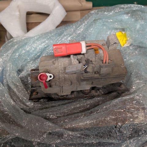 Autotallin siivoamisen yhdeydessä löytyi kyseinen ilmastoinnin kompressori. Vaihdettu omasta autosta viime kesänä "varmuuden vuoksi", mutta jälkeenpäin toimivaksi todettu laite.