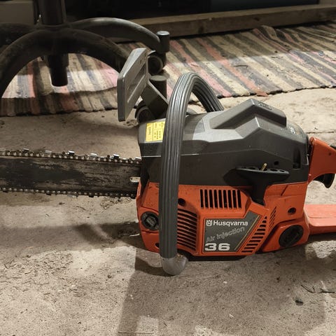 Siistikuntoinen 40cc yleissaha. Potkua tässä on 1,6kw ja painoa ilman terävarustusta 4,2kg.