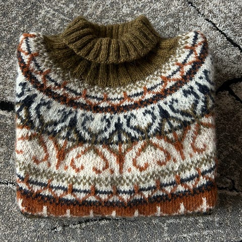 Myydään uusi islantilainen villapaita. Riddari korkealla kauluksella ja neulotuista naruilla. Lämmin, mutta hyvin hengittävä. Lankana Lettlopi, 100% islanninvilla.