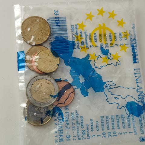 Suomen markka kolikkopussi. Pussissa on useita markka-ajan kolikoita muovipussissa. Sopii esimerkiksi keräilyyn, esineistöksi tai rekvisiitaksi Suomen rahahistorian ajalta ennen euron käyttöönottoa.