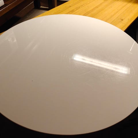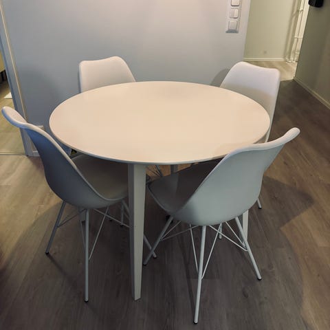 Pyöreä ruokapöytä , kansi 100 cm ja kaksi tuolia.