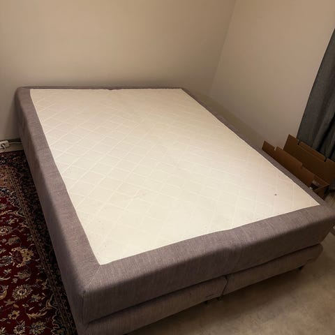 Jysk jenkkisänky. Kokonaisuus koostuu kahdesta alarungosta, joustinpatjasta ja petauspatjasta.