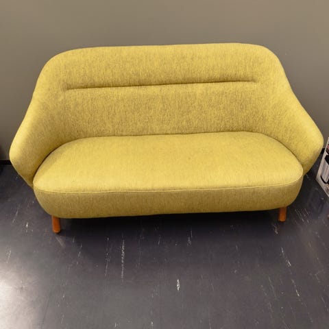 Kahden istuttava antiikki sohva punertavalla verhoilulla 1900-luvun alkupuolelta