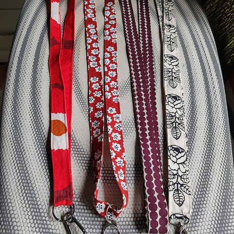 🖤 Käsin tehty ja käyttämätön, pitkä, olan yli pidettävä avainnauha. Turvalukko. Papukaijalukko avaimia varten.
