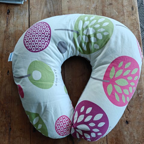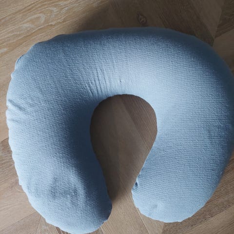 Lahjaksi vain kuukausi sitten saatu ihana imetystyyny, jonka käyttö jäi imetyksen epäonnistumisen takia vähäiseksi. Pesin päällisen hajusteettomasti ennen myyntiin laittoa, mutta eteen tullut tahra ei lähtenyt. En yrittänyt poistaa sappisaippualla.