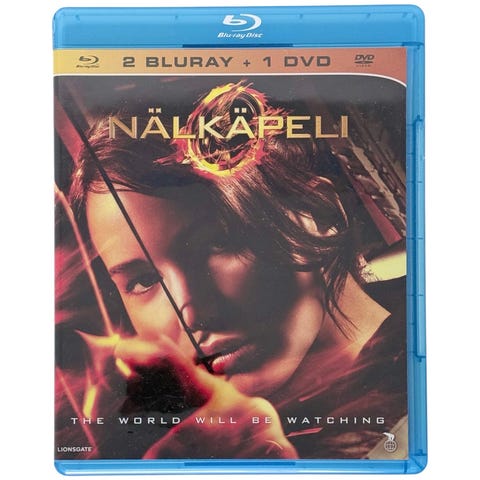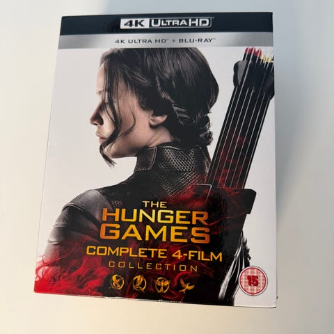 Uudenveroisessa kunnossa oleva blu-ray paketti, jossa kaikki 4 Nälkäpelielokuvaa.