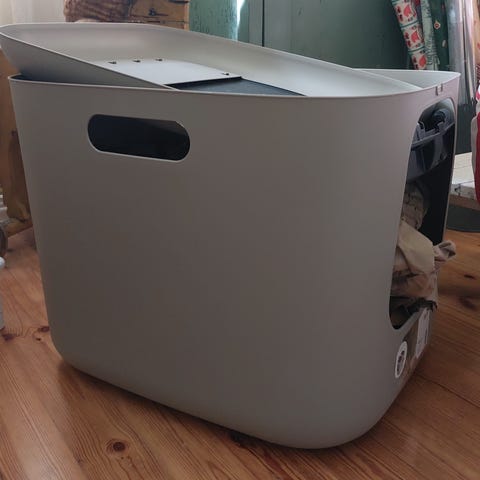 Kissojen vähennettyä iso kissan vessa myyntiin koko pituus 70 Kork 45 Lev 54. Vessa pesty.