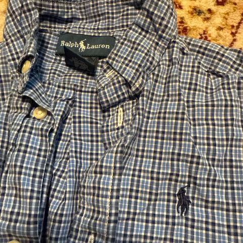- Polo Ralph Lauren paita, sininen jossa mustat raidat. Kokomerkintä leikattu pois, mutta vastaa mielestäni kokoa 92/98 cm. Edessä kirjailtu keltainen logo. Erittäin hyvä käytetty kunto: ei tahroja tai muita vikoja. Resoreissa näkyy aavistus pesuhaituvaa läheltä katsottaessa. 100% puuvillaa. Yhden lapsen käyttämä.