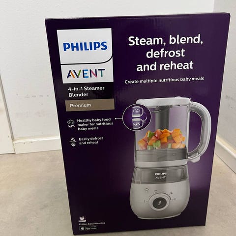 Philips Avent vauvanruokalaite, jossa yhdistyvät höyrystin ja tehosekoitin. Laitteessa on valkoinen runko vihreällä yksityiskohdalla sekä läpinäkyvä sekoituskannu. Säiliöön voi höyryttää esimerkiksi vihanneksia ja hedelmiä, minkä jälkeen sama säiliö käännetään ja käytetään tehosekoittimena soseiden valmistukseen. Laitteessa on mekaaninen kiertokytkin eri toiminnoille. Soveltuu erityisesti vauvan ja pienten lasten ruokien valmistamiseen kotitalouskäytössä.