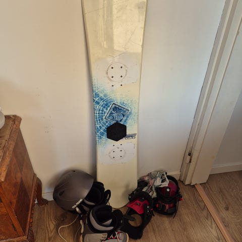 Myynnissä erikseen yhteensopivat Burtonin 150cm lauta ja uudenveroiset Scribe siteet.